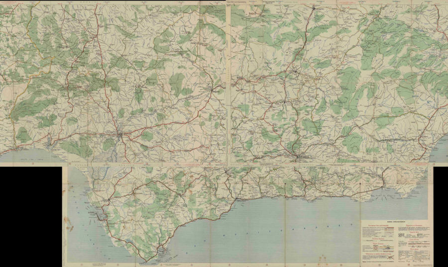 La marca de neumáticos Michelín utilizó desde temprano la publicación de mapas y guías como sistema de publicidad, que fueron de gran utilidad para el fomento del turismo. El mapa que se presenta es una composición de varias hojas de una serie de los años 40 (escala 1:400.000), en la que se aprecia con detalle la estructura de la red y el estado de sus distintos tramos. También pone de manifiesto ciertas carencias históricas de la red que se mantienen, como la falta de carreteras en el litoral o en la zona más oriental de la región.