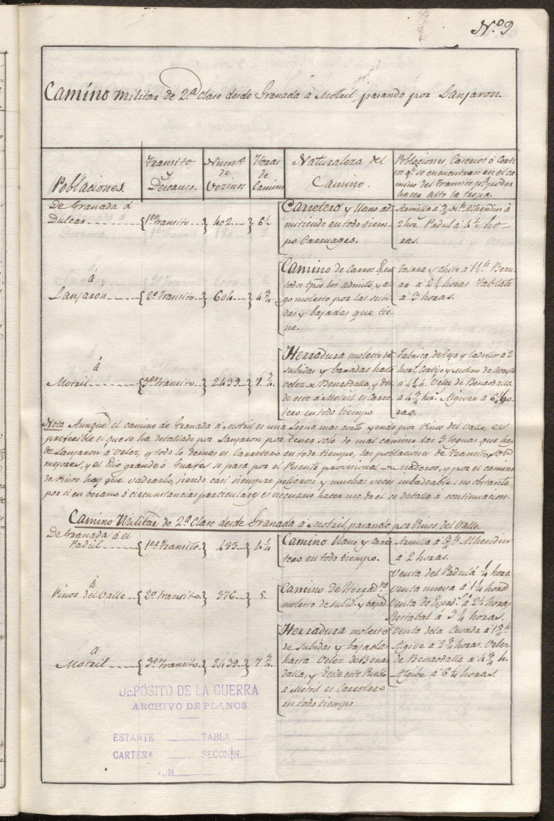 | De Granada a Dulcar | 1er transito | 402 | 6 1/2 | Carretero y llano admitiendo en todo tiempo carruages |