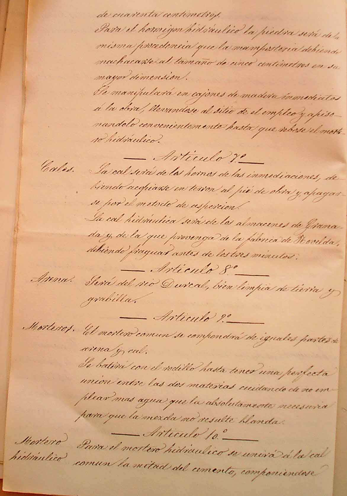 La cal hidráulica será de los almacenes de Granada y de la que
