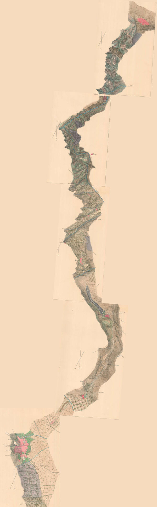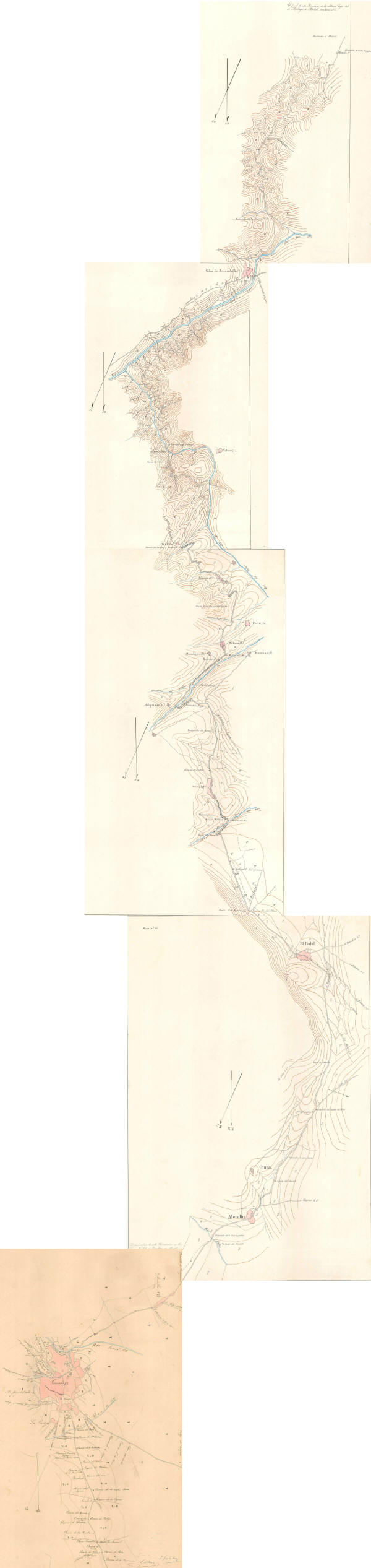 "Itinerario topográfico de Granada a Motril, levantado con la brújula por el comandante D. Gabriel de Torres Jurado, y el capitán D. Luis de la Torre Escala [1:20000] Documento incompleto, pues falta la parte del itinerario entre las poblaciones de Granada y Alhendín, comprendiendo parte de los partidos judiciales de Motril, Orjiva y Granada en la provincia de este mismo nombre, y pasando, entre otras por las poblaciones de Padul, Béznar y Vélez de Benaudalla Manuscritos firmados y rubricados por los autores Orientados con flecha Relieve representado por curvas de nivel Existen dos ejemplares" |