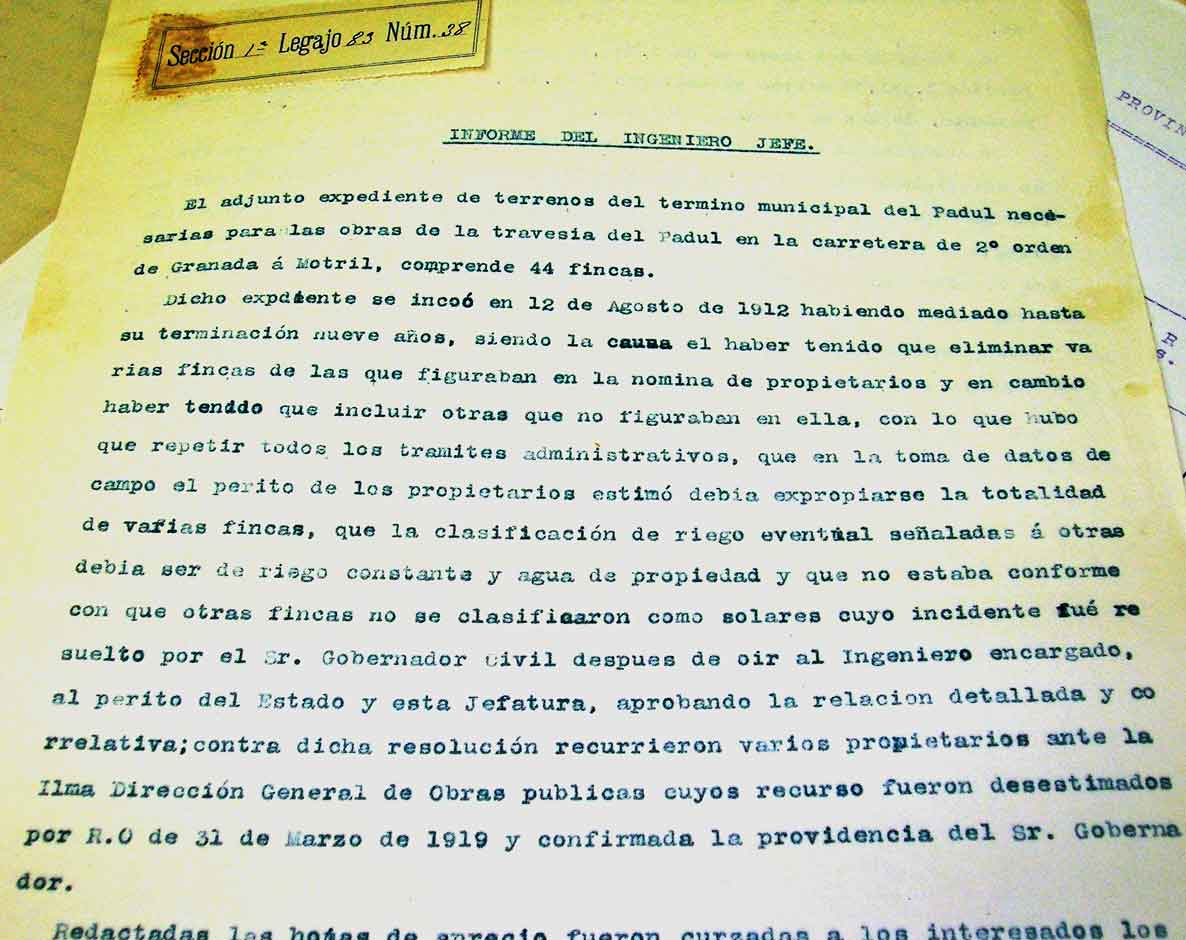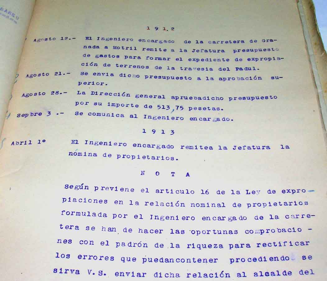 La travesía del Padul era un proyecto que se inicia sobre 1912, pero