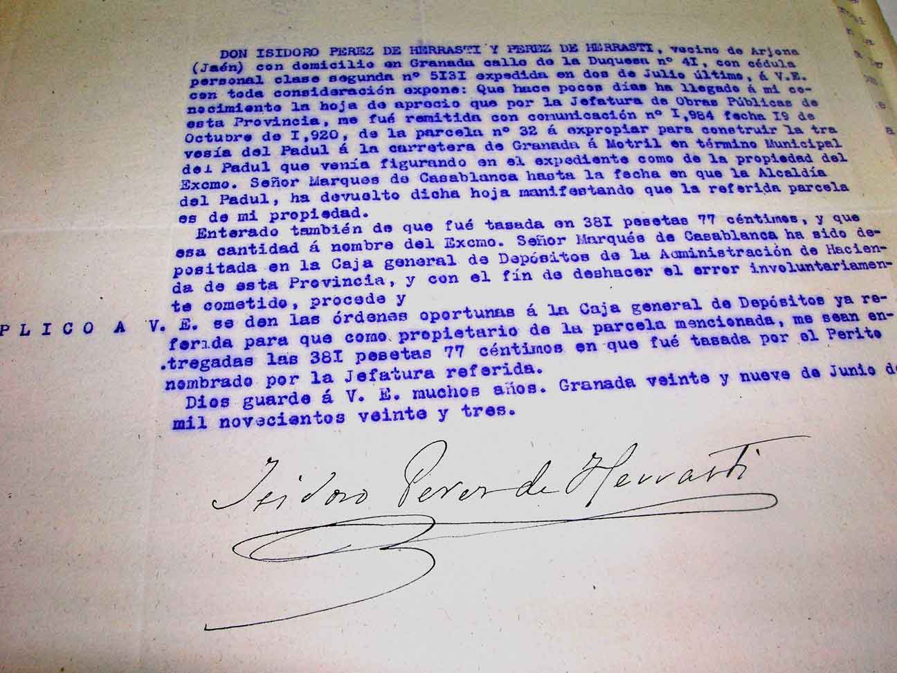 El conde de Padul, Don Isidoro Pérez Herrasti hace