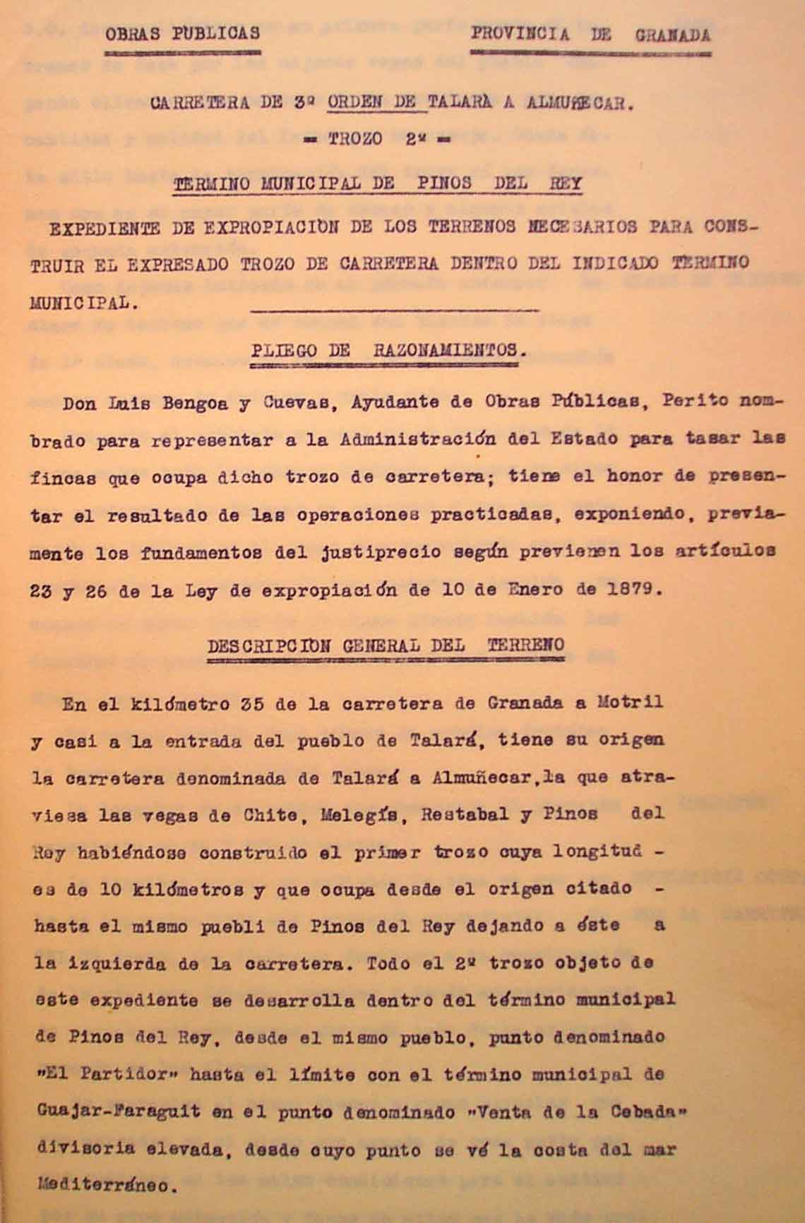 Se establece el primer tramo de construcción desde Pinos al Barranco de la Zaza