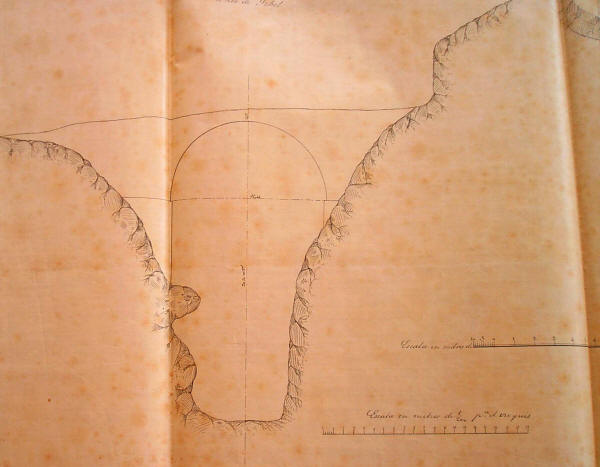 Colocación del antiguo puente de arriería que cruzaba el paso, Hoy desaparecido