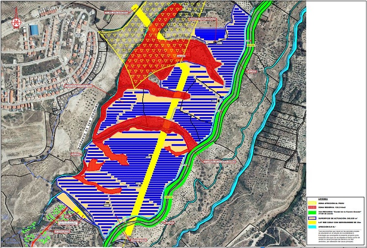 El parque fotovoltaico contará con una línea eléctrica de evacuación de dos kilómetros, 1,7 aéreos, con torretas eléctricas, hasta la subestación de El Fargue.