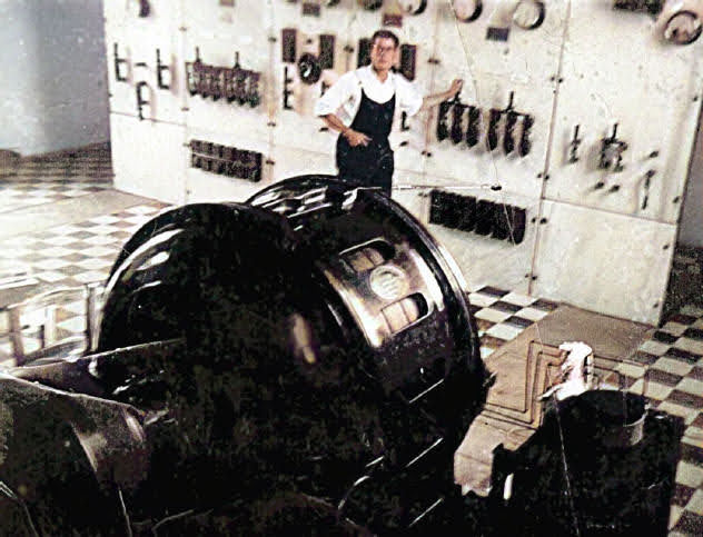 Antonio García García junto a un generador de electricidad en la Subestación de