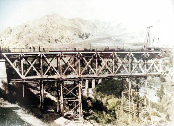 Construcción del puente en el río Gor