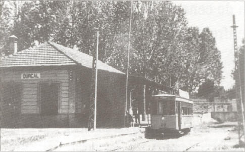 | El tranvía en la estación de Dúrcal. Muchos recorrían varios kilómetros desde diversos pueblos del Valle andando hasta aquí para emprender viaje hasta Granada. Durante décadas aquel viaje constituyó toda una aventura hacia la ciudad y el progreso. |