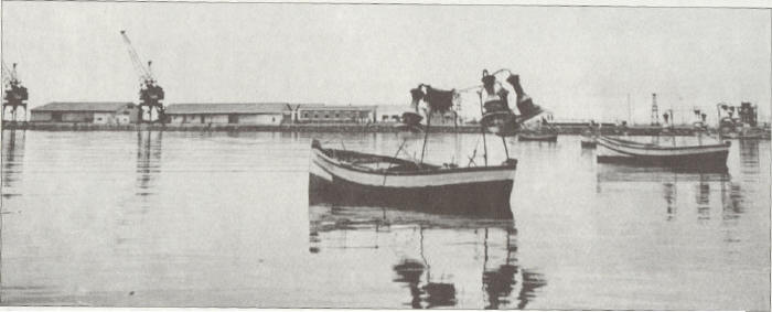 Vista parcial del muelle del puerto motrileño e instalaciones del cable aéreo Dúrcal-Motril. (Foto publicada por "El Puerto de Motril'; publicado por la editorial motrileña