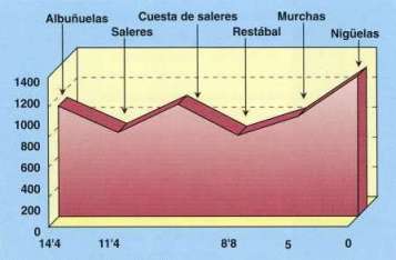 | 14,4 | 3h. 15' | Las hazas cultivadas de habichuelas, patatas y hortalizas nos anuncian que estamos próximos al Barrio Bajo de las Albuñuelas. |