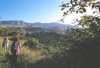 La vereda, que está bien definida, y no admite dudas en su itinerario. nos remonta a unas paratas. Al frente observamos el municipio de Restábal. Hacia él nos dirigimos.