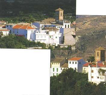 | Pinos del Valle y la fortaleza de Mondújar (Foto compuesta) | Vista del bosque de cultivos desde la fortaleza de Mondújar |