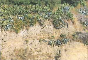 Los cortados y taludes del río aparecen colonizados por chumberas |