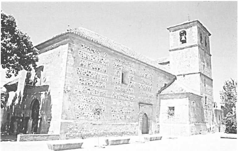 Cozvijar. Las condiciones para la realización de esta iglesia fueron redactadas en tomo a 1540, sin que en ellas quede especificado su autor; también se realizó un plano somero que muestra la extrema sencillez de su estructura21. A través de estas condiciones podemos rastrear, una vez más, el procedimiento y técnica normal de construcción de estos templos. Los cimientos se habían de hacer en forma de talud (más anchos por abajo que por arriba), variando su anchura de cinco ladrillos en la parte baja y cuatro en la alta hasta el ras del suelo. Desde ahí hasta la comisa las paredes tendrían de grueso tres ladrillos (el equivalente a 1,05 o 1,10 m.), que es el grosor normal de la mayoría de las paredes de estas iglesias22- Estas paredes serían de rafas y cintas de ladrillo hasta una altura de ocho varas (6,68 m.) y los cajones serían de tapias (mezcla de cinco espuertas de tierra y una de cal), debiendo estar metidas en agua ocho días antes de gastarlas; la obra sería hecha a carne y cuero, es decir, «poniendo (el maestro) todos los materiales que para la dicha obra fuere menester». El plano especifica la estructura de una sola nave con altar mayor en un extremo, y dos portadas, una en el lateral derecho y otra a los pies, correspondiéndose a como están en la actualidad.