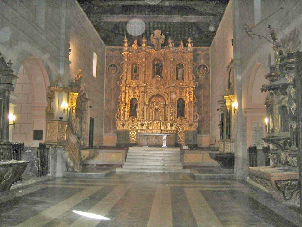 La presencia a los lados de la nave y cerca del altar de dos pilastras, hoy sin utilidad arquitectónica puede indicar que en algún momento tuvo una nave y capilla mayor independiente. estructura que sería reducida a la actual en la restauración de finales del S. XVI