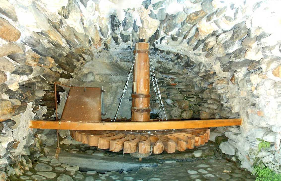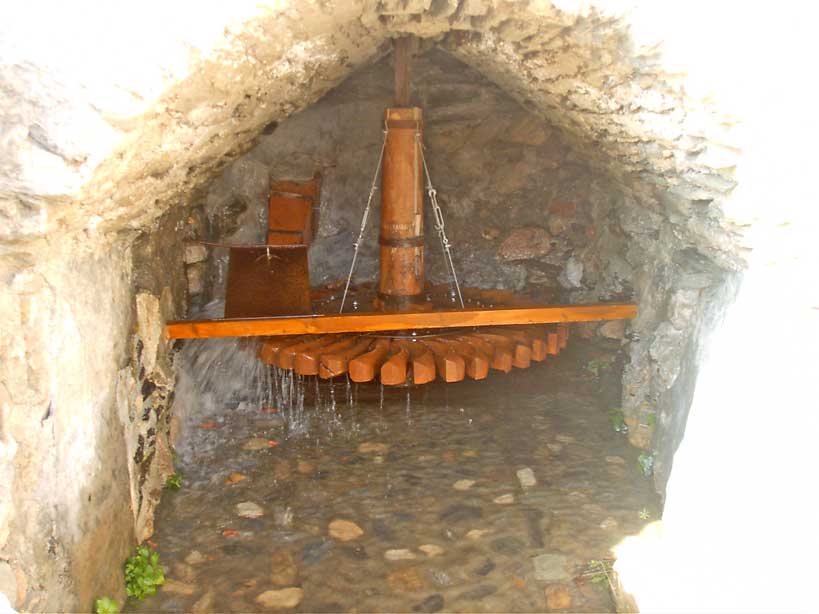 Rodezno. (Del lat. roticĭnus, de rota, rueda). Rueda hidráulica con paletas curvas y eje vertical.