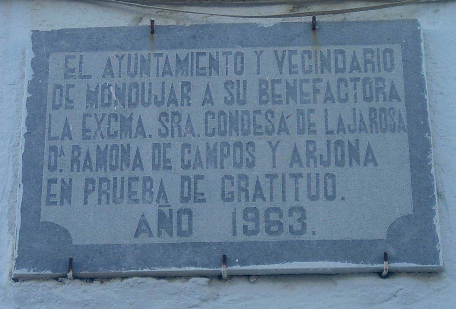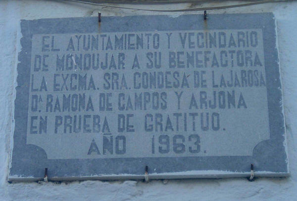 "El Ayuntamiento y vecindario de Mondújar a su benefactora la