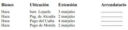 En primer lugar encontramos una haza de tierra calma, de tres marjales de superficie, ubicada cerca del Barranco de Lojuela, que alinda por uno de sus lados con la iglesia vieja, es decir con el edificio abandonado de la mezquita del lugar, por otro con el camino que va desde Lojuela a las poblaciones de Melegís y Restábal y por otra parte nos dice que se encontraba un olivar de Agustín Abeazid. No dice nada sobre el arriendo ni el precio que proporciona.
