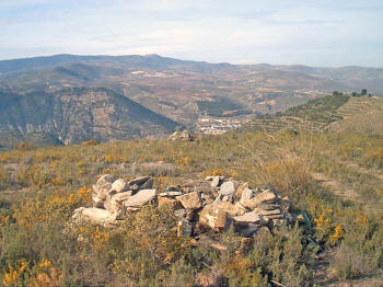 Cónchar. En la fotografía de la derecha en primer lugar aparece un puesto de caza de perdices, Cónchar al fondo