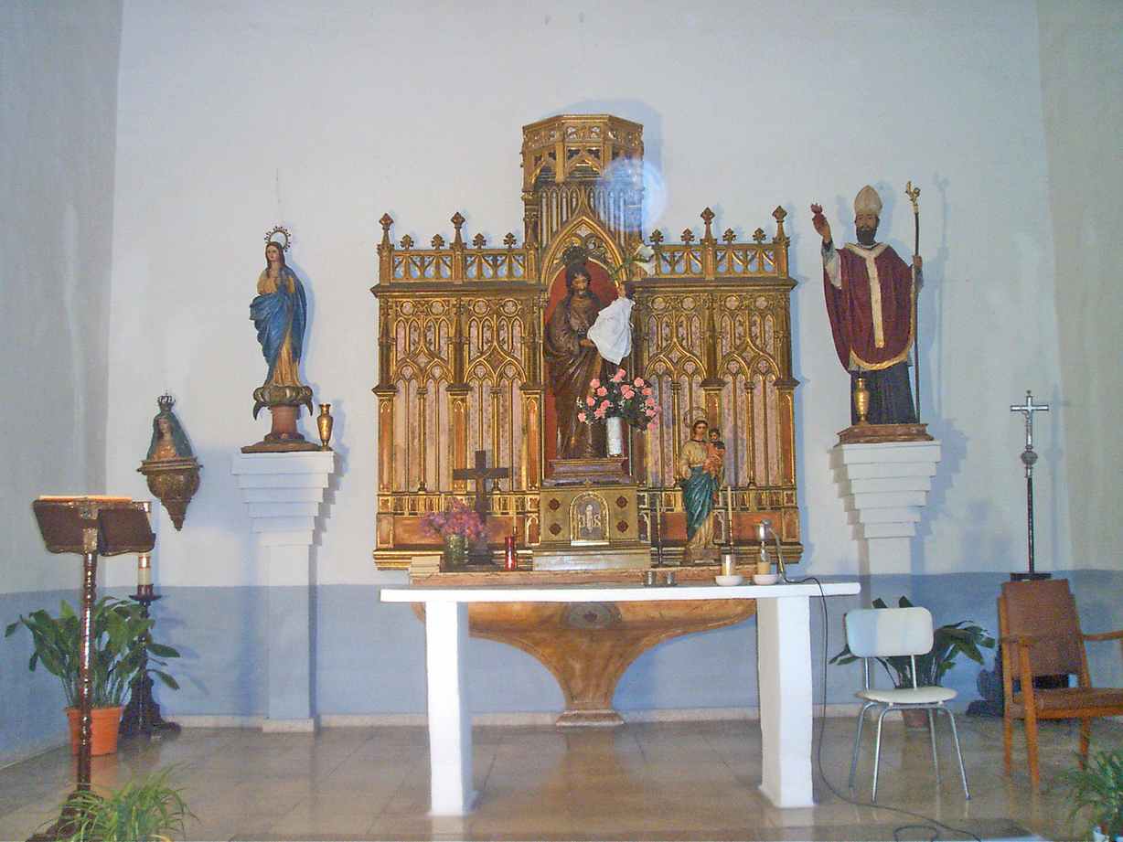 El altar mayor fue recientemente reformado en su totalidad a causa de su avanzado estado de deterioro, según se dice. El actual está presidido por el Patrón San José La Inmaculada a la izquierda y la Virgen de la Fe a la derecha