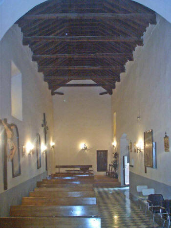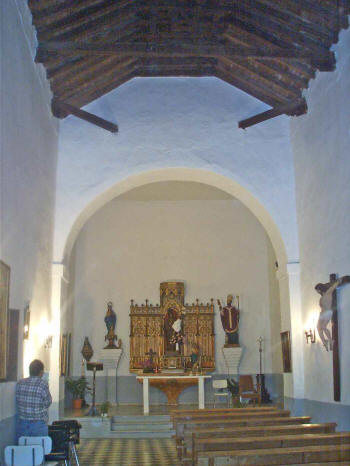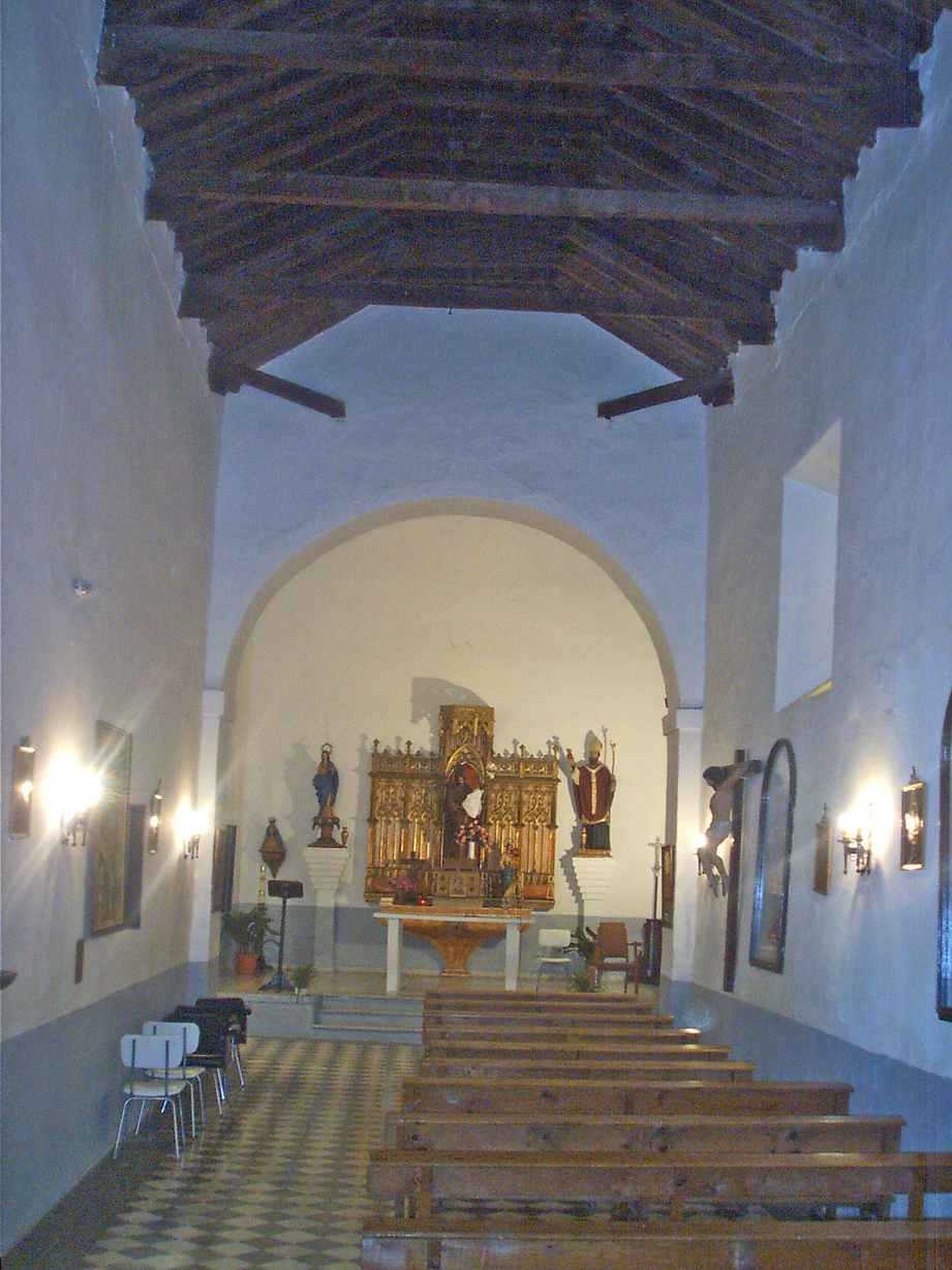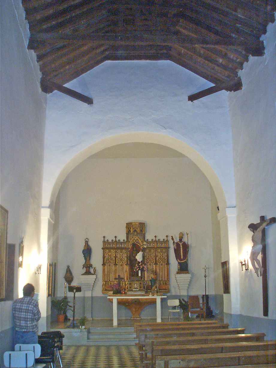 Es una iglesia sencilla de una sola nave. En las fotos de abajo se puede observar el arco toral que divide la nave y la Capilla Mayor. El artesonado de madera es de par y nudillo con seis tirantes simples. en la cabecera muestra decoración geométrica. está bastante retocado. Las tirantes tienen canecillos en Y.