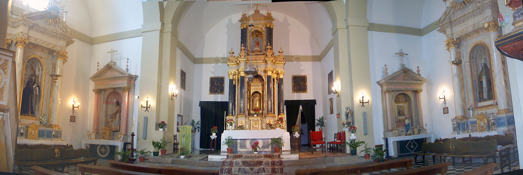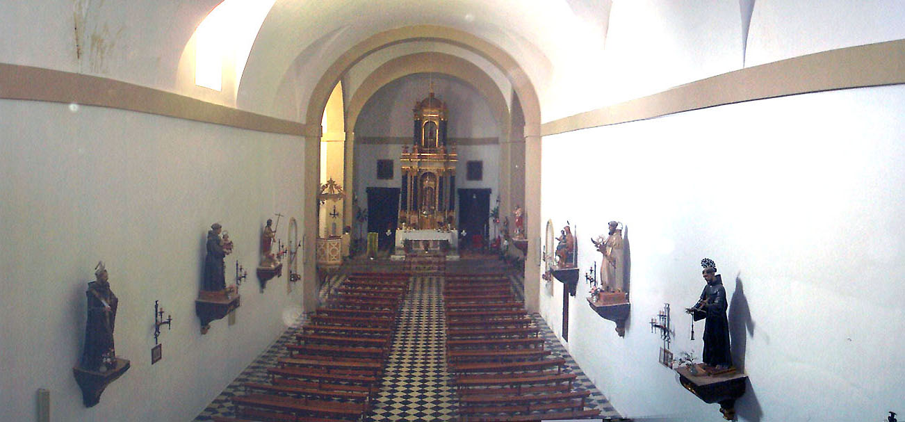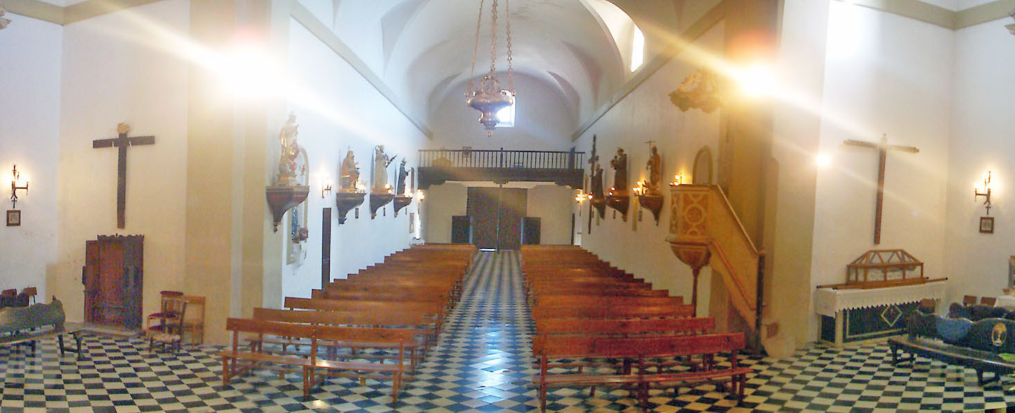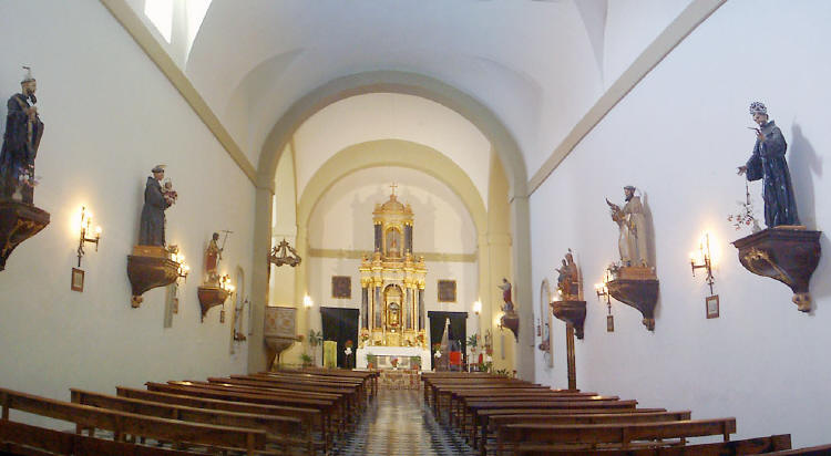 Vista de la nave desde el altar mayor. Al fondo la puerta de entrada y el coro