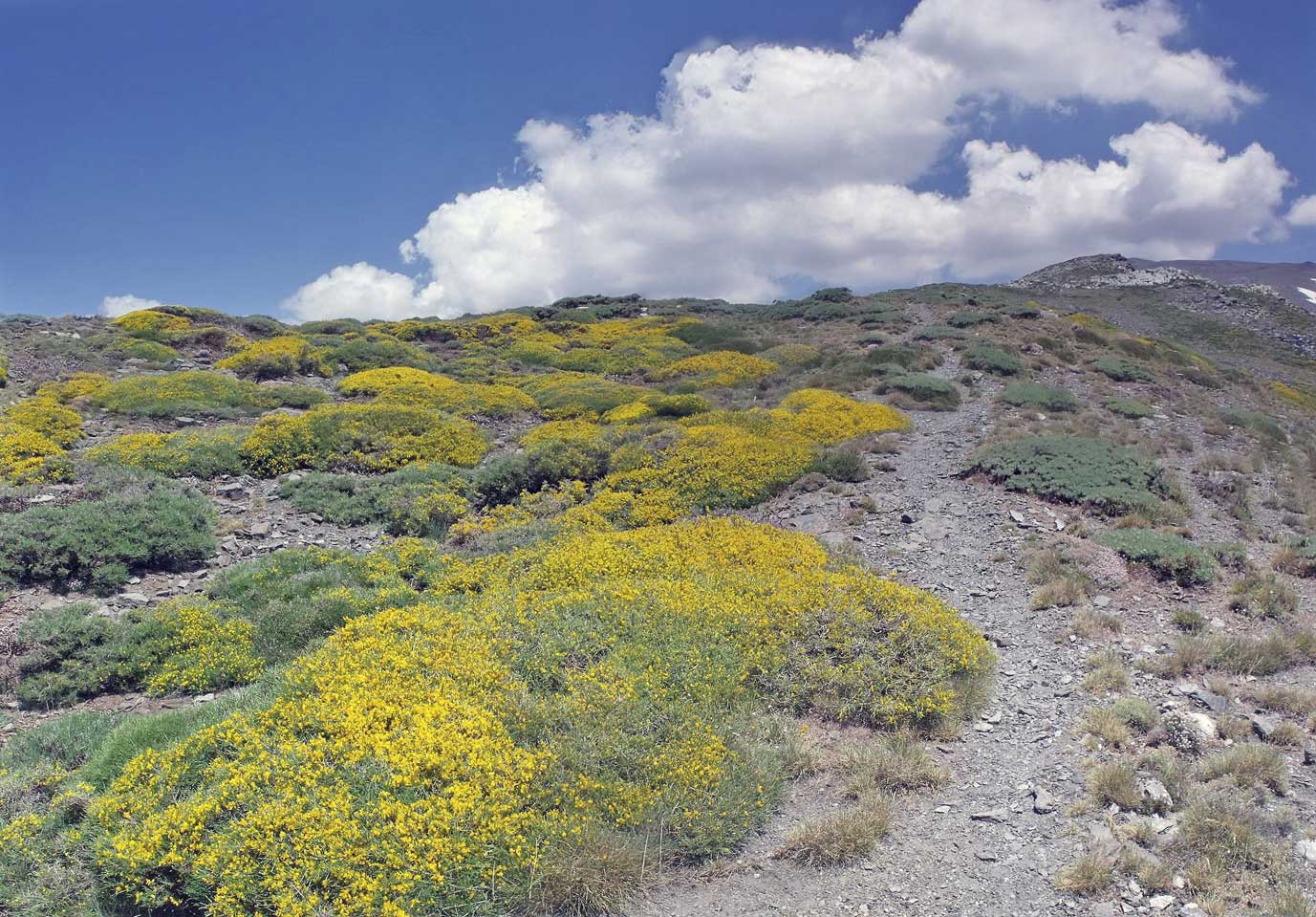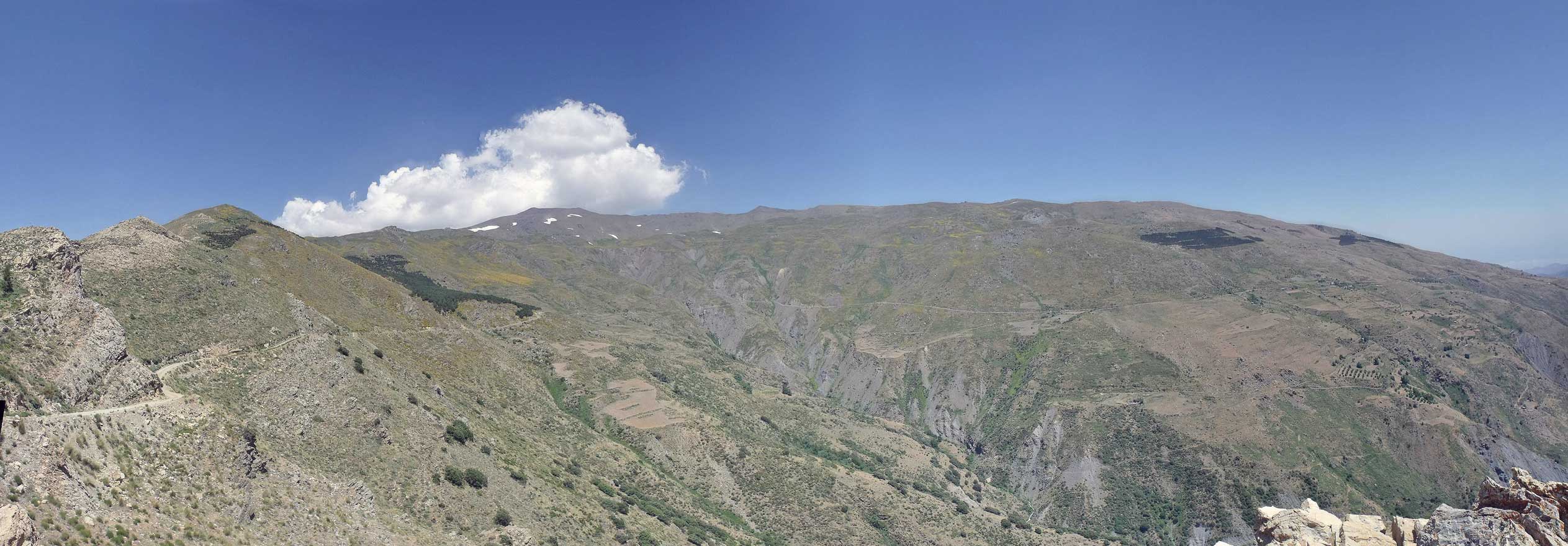 Al llegar a la cumbre del Zahor, el camino se allana y se pone mucho más cómodo. En seguida encontramos primero un cruce a la izquierda que se dirige al Peñón de Granada. Nosotros seguiremos de frente. Inmediatamente se ve otro cruce también a la izquierda que se interna en la Sierra de Dúrcal. Volveremos a seguir de frente dirección: Ermita y Fuente Fría