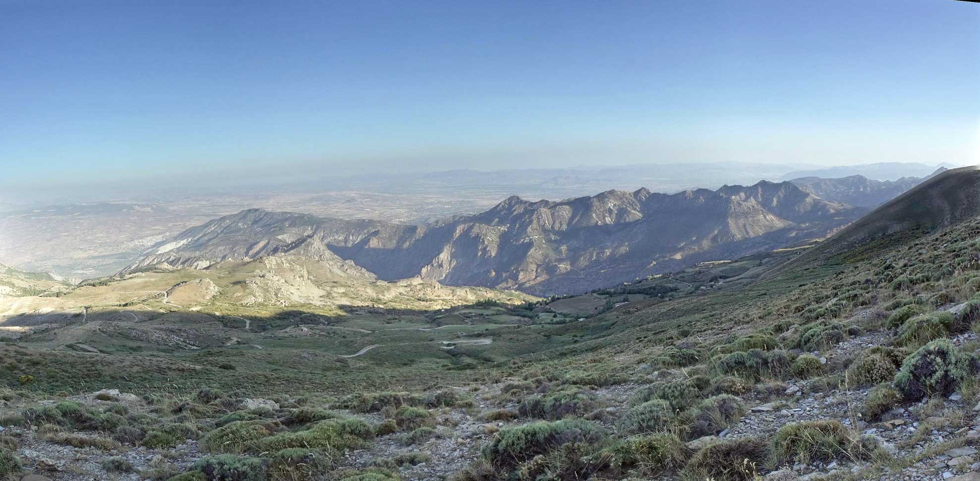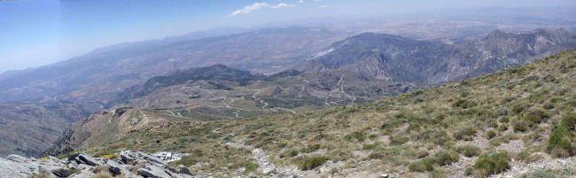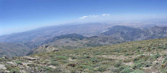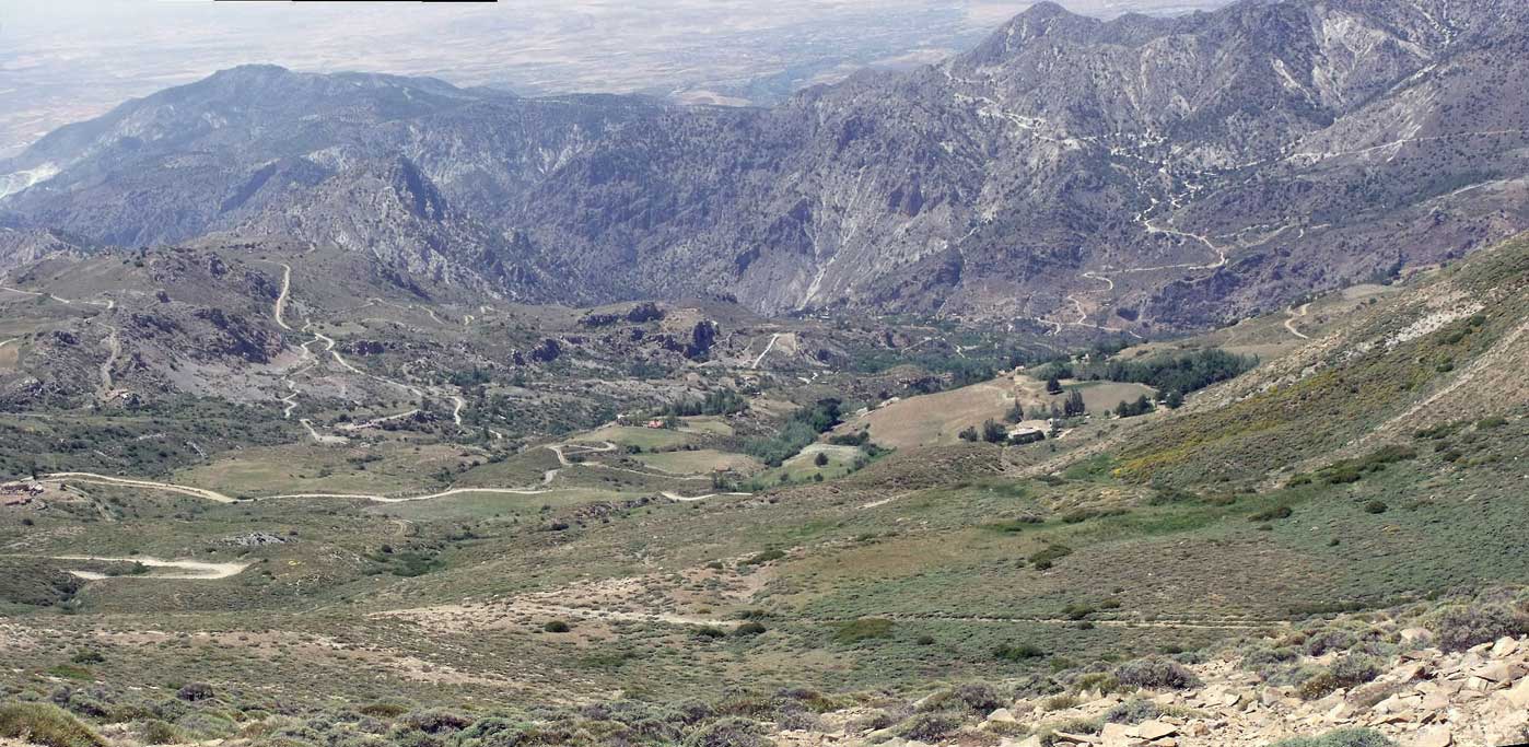 Tras subir desde el río Torrente a la cumbre del Zahor se discurre por un camino con no mucha pendiente que va entre los términos de Dúrcal y Nigüelas