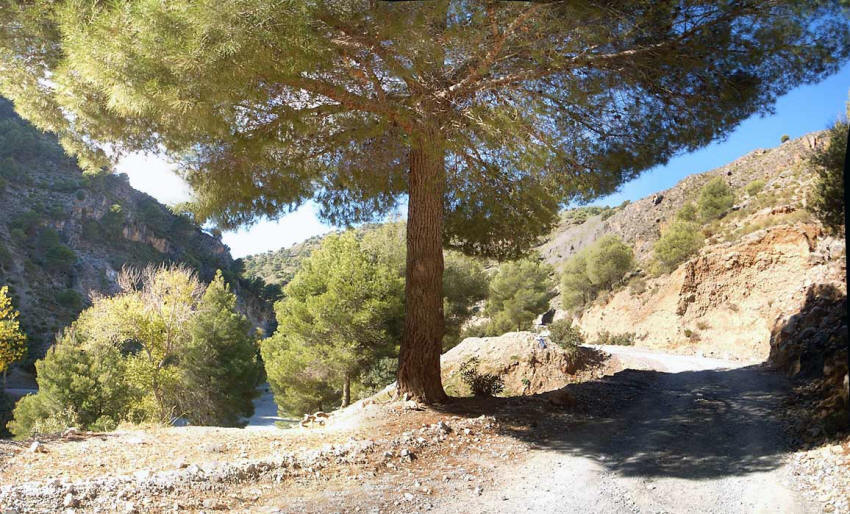 El camino sigue paralelo al río y entre pinares