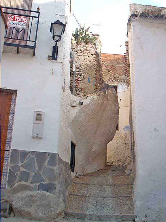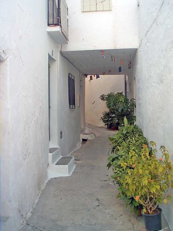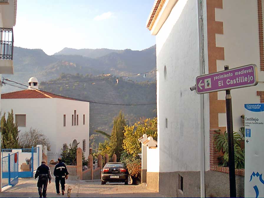 antigua acequia de riego adosada a la fachada almenada de la iglesia |