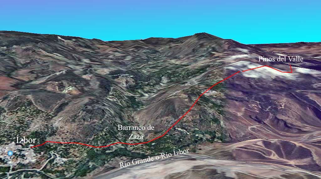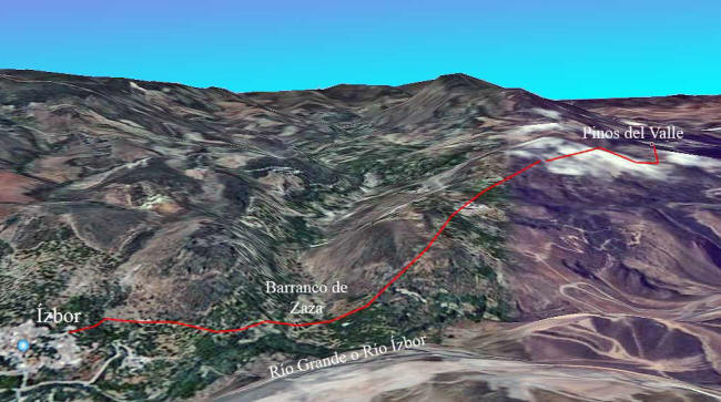 Inicio | Mapas | Inicio desde Pinos | El camino | El Río Grande | Vistas | Barranco de Zaza | Molino de Chávez | Molino de Miguel Hernández | Tormenta de piedras | Ízbor | | Molino de D. Antonio | Frutas tropicales