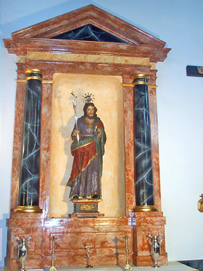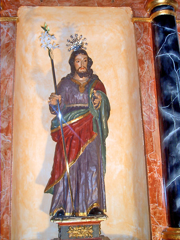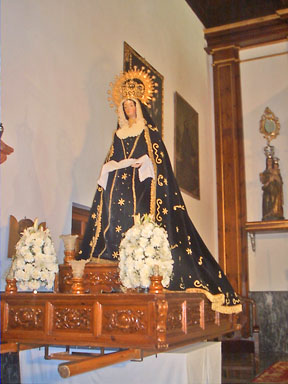 Estaba colocada en sus Andas por ser Semana Santa y colocada en el lado izquierdo