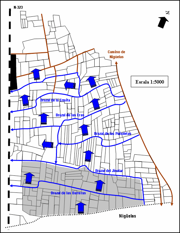hacia Nigüelas, es un brazal que se desdobla y toma dos nombres.