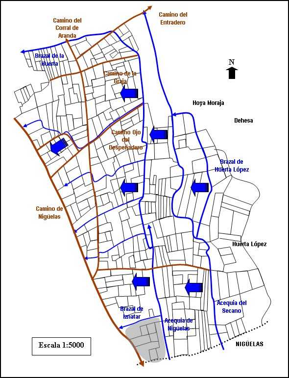 - Los brazales llegan justo encima de la acequia de Margena situada