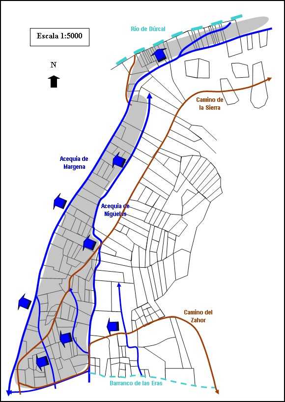 punto de llegada de agua a Dúrcal, ya que siete fincas hacia la parte de arriba,
