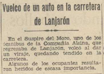 14 de diciembre de 1936. Vuelca en el Suspiro del Moro un ómnibus de la Alsina que regresaba de Lanjarón