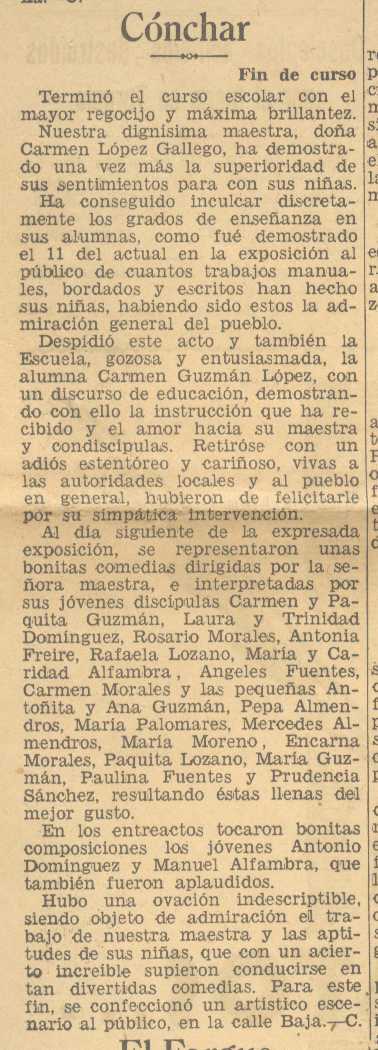 16 de julio de 1936. Termina el curso en Cónchar. Maestra Doña Carmen López Gallego