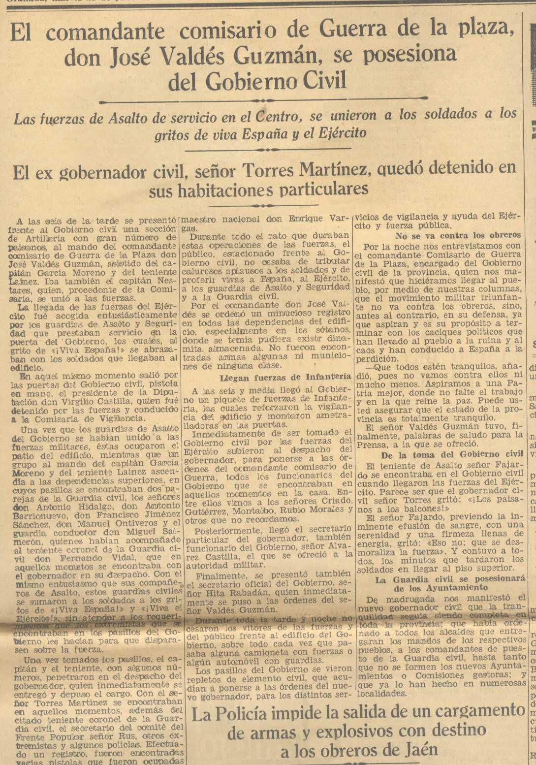 21 de julio de 1936. El Comandante José Valdés Guzmán toma el Gobierno Civil de Granada