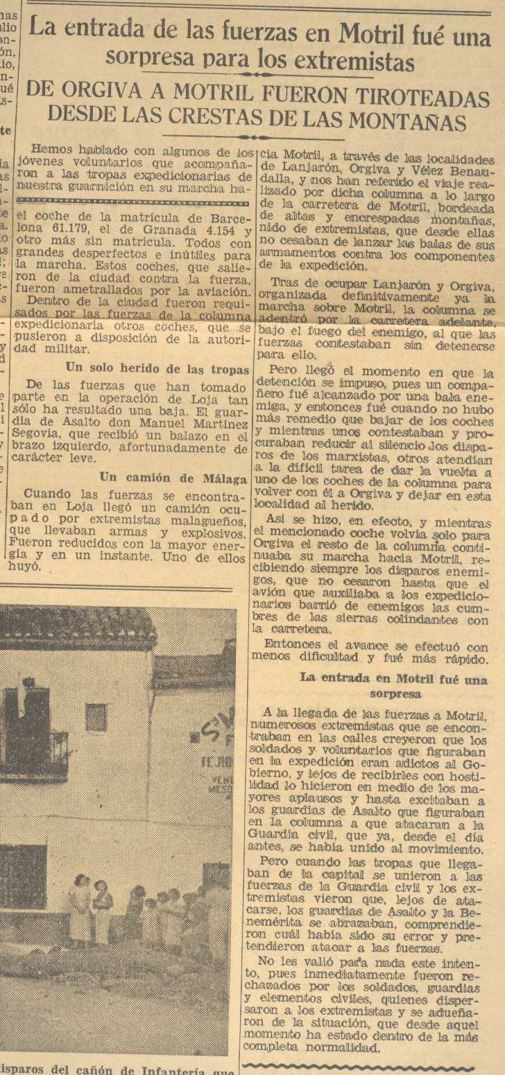 24 de julio de 1936. Una guarnición de tropas tras atravesar Lanjarón, Órgiva y Vélez Benaudalla se dirigen hacia Motril, son tiroteados desde las montañas a su paso por la carretera
