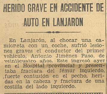 29 de julio de 1936. Herido grave en accidente de auto en Lanjarón