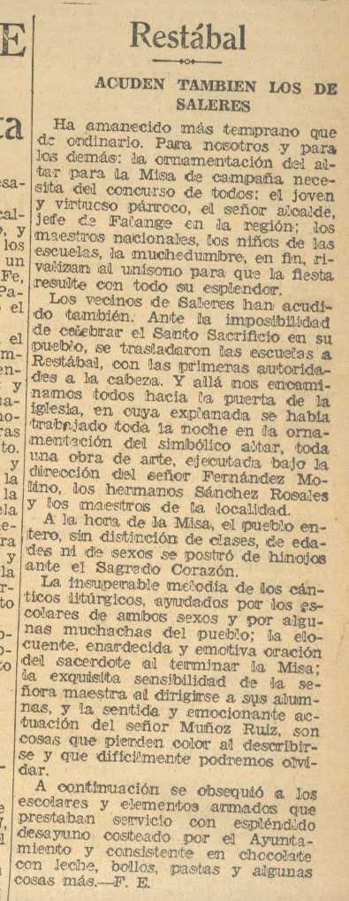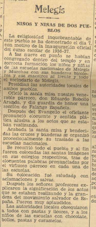 10 de septiembre de 1936. Melegís y Murchas inauguran el curso escolar con una misa del párroco Don Eduardo Rebollo Aranda