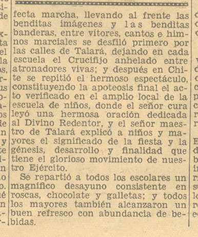 11 de septiembre de 1936. Se restituye el crucifijo a las cuatro escuelas de Chite y Talará. Se celebró rosario en la ermita del Cristo del Zapato