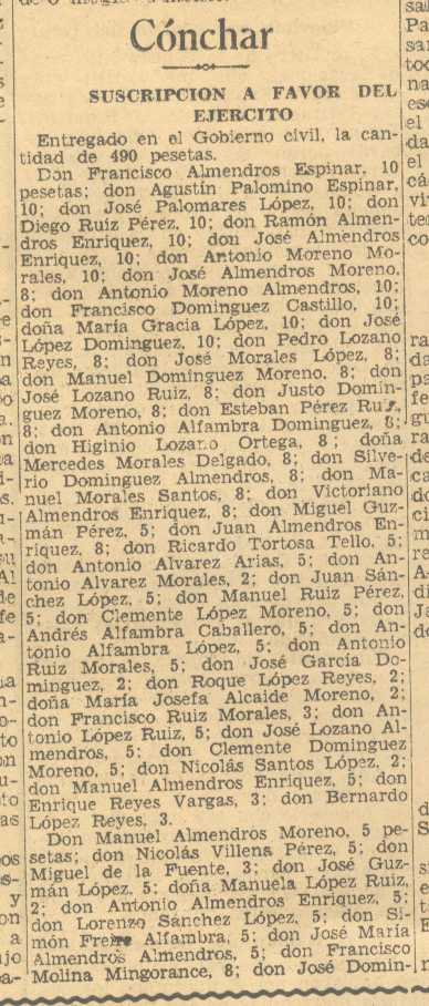 15 de septiembre de 1936. 490 pesetas recogidas en suscripción para el ejército en Cónchar