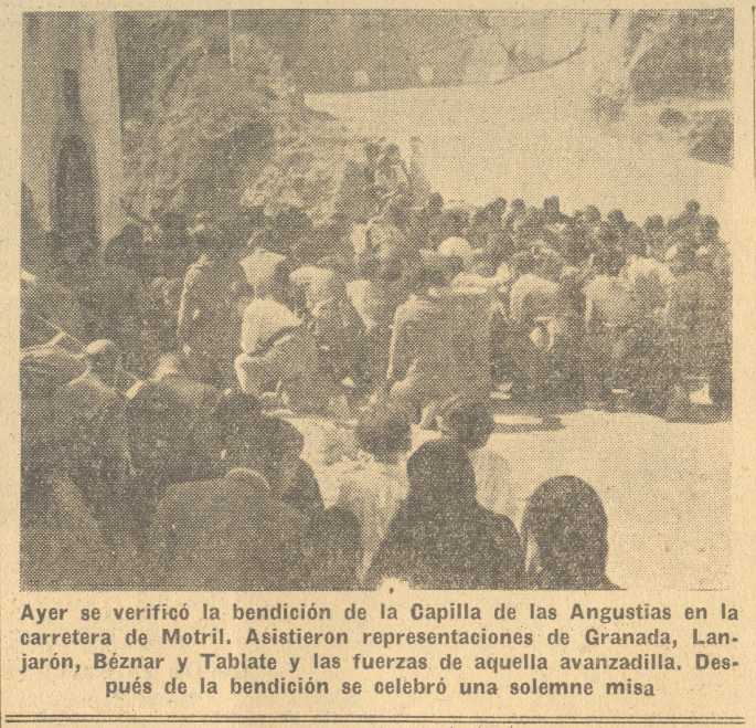 28 de septiembre de 1936. Se bendice la capilla de las Angustias de la carretera de Motril. Asisten representantes de Lanjarón, Béznar y Tablate