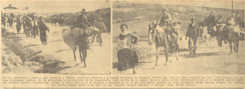 19 de enero de 1937. Tras la toma de Málaga por las fuerzas nacionales son numerosos los refugiados que huyen hacia Almería por la carretera de la costa