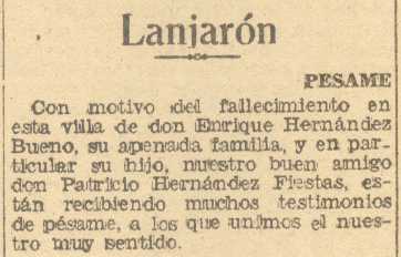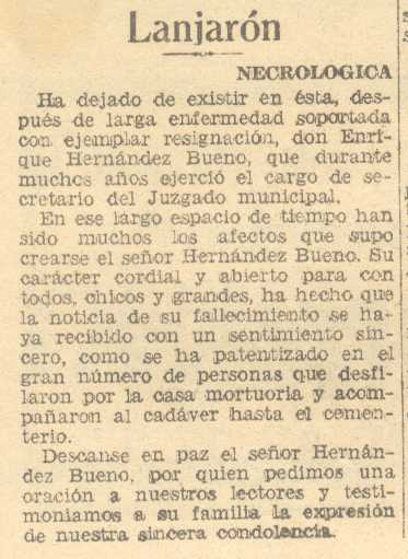 14 de agosto de 1937. Ha fallecido en Lanjarón Don Enrique Hernández Bueno