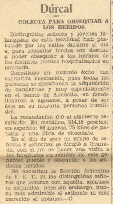 10 de agosto de 1937. Colecta en Dúrcal para obsequiar a los heridos