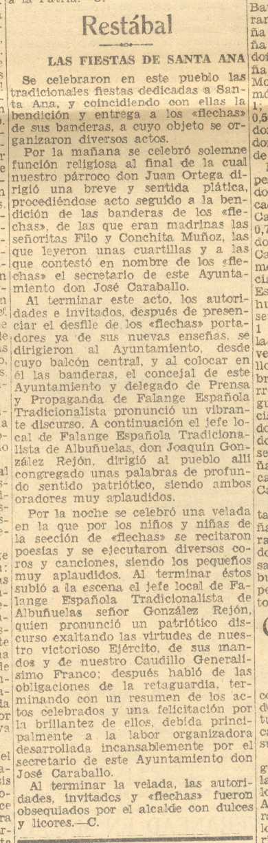 12 de agosto de 1937. Fiestas de Santa Ana en Restábal. Párroco Don Juan Ortega. Secretario Ayuntamiento Don José Caraballo