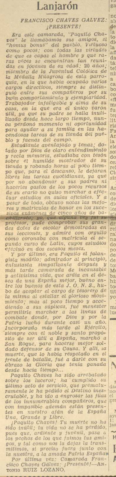 29 de agosto de 1937. Muere en la guerra Don Francisco Chaves Gálvez de Lanjarón