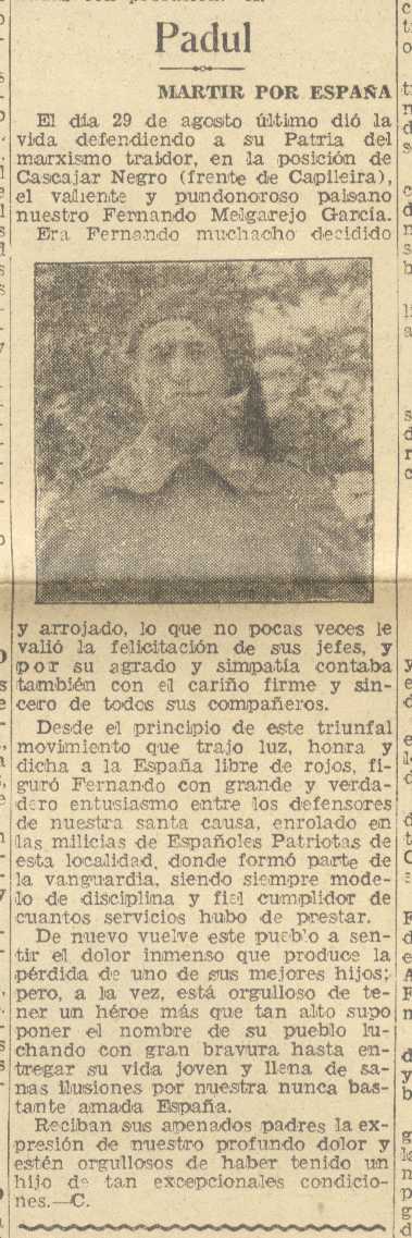 11 de septiembre de 1937. Fallece en combate Don Fernando Melgarejo García del Padul